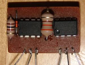 Bestückungsseite, die Diode der 5V Seite (rechts) ist wegen Fehlersuche und Bequemlichkeit auch auf die Kupferseite gewandert.