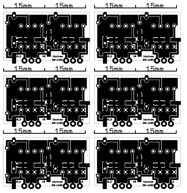 Ich hänge hier mal alle Eagledateien rein (netio_7805_ersatz_all.zip). Für Nicht-Eagler gibt es auch normale Bilder. Ich habe bei der Leiterplatte zwei Striche mit jeweils 15mm eingezeichnet. Somit kann man prüfen, ob der Drucker das Bild richtig zu Papier bringt. 0,5mm Abweichung sind unkritisch, ab einem Millimeter muss man den Schaltkreis schon arg in die Löcher quetschen.
